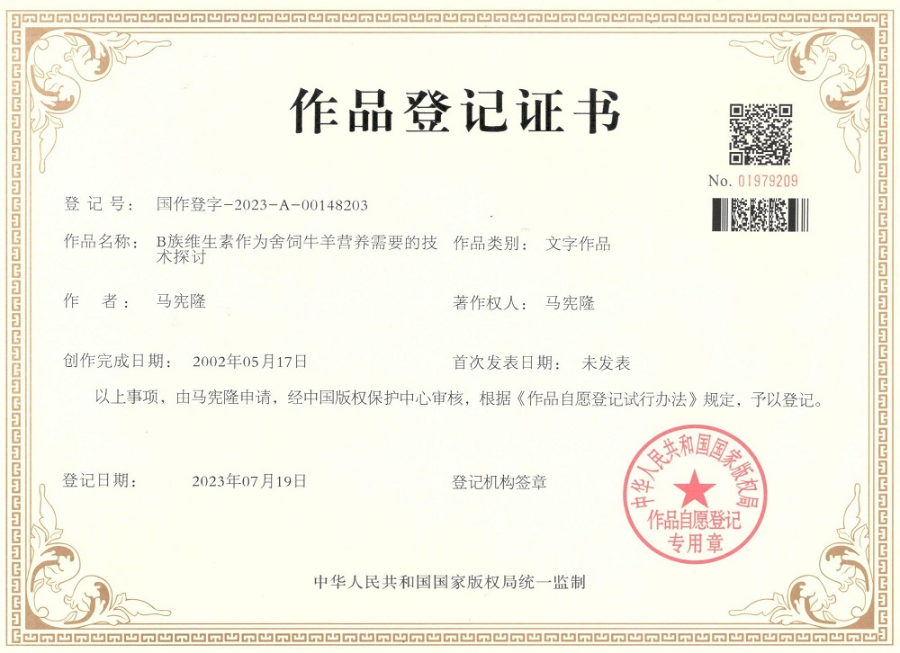 B族維生素的技術(shù)探討登記證書